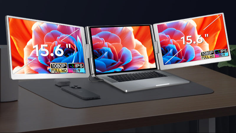 En skærmudvider til bærbar – også kaldet portable monitor eller ekstern skærm til laptop – er en sammenklappelig enhed, som monteres bagpå din bærbare og giver dig op til 3 skærme i alt.