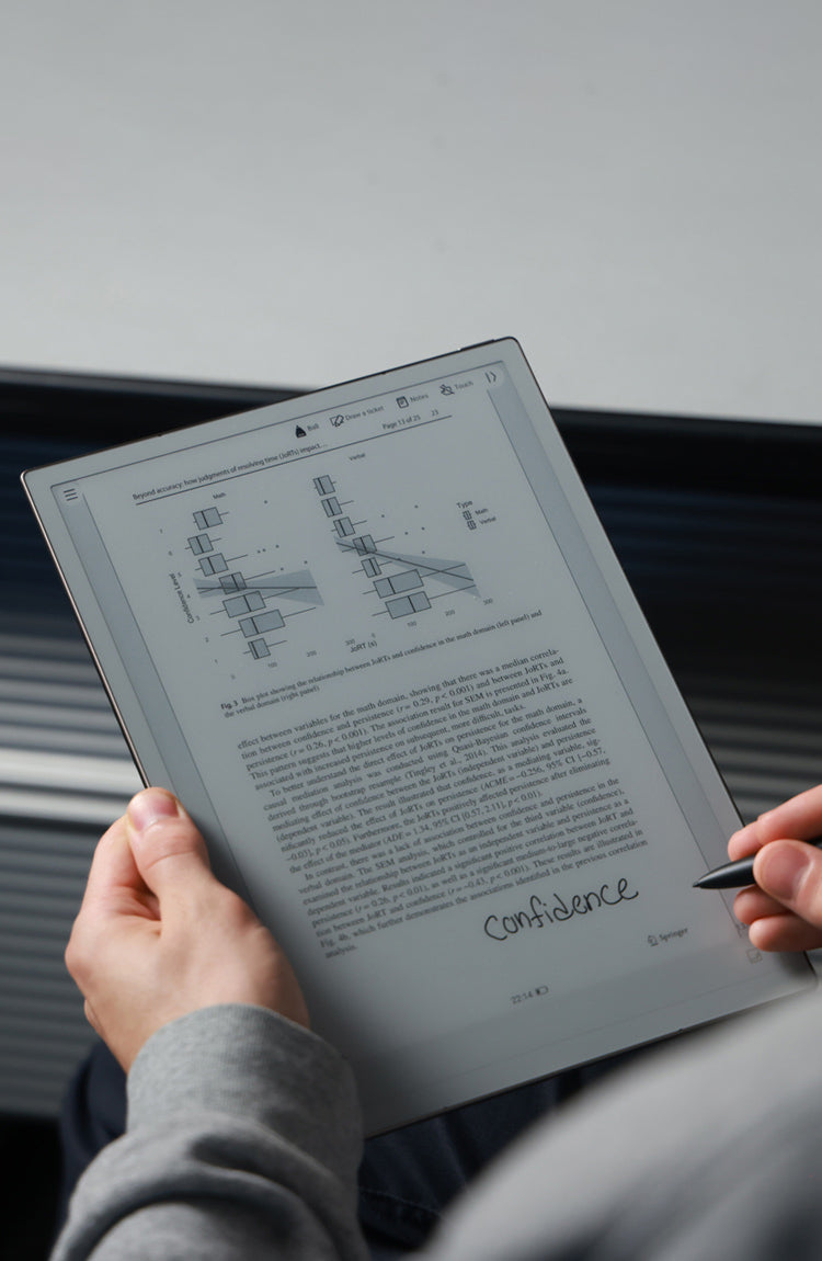 Papirfølelse, mindre øjentræthed – 10,65" e-ink i høj opløsning (1920×2560, 300 PPI) til læsning, skitser og markering af PDF’er.