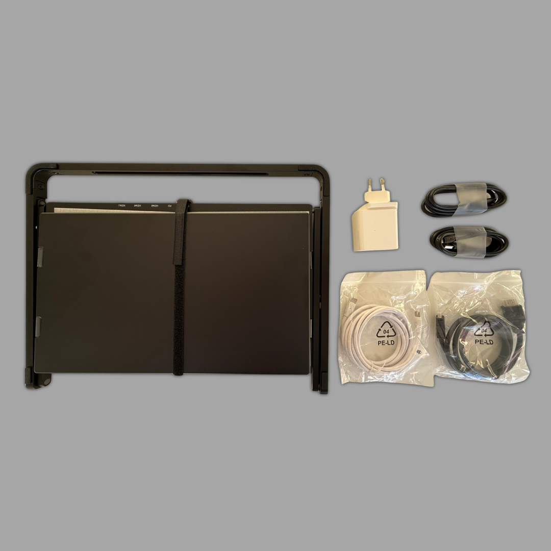 Den ultimative triple skærmudvider til bærbar: Få tre FHD-skærme (15,6") i en foldbar, let løsning, der kobles direkte til din laptop via USB-C/HDMI. Perfekt til rejsende, studie, regneark, kodning og multitasking – og dokumenteret til at øge produktiviteten, fordi du får mere arbejdsplads uden at skifte vinduer hele tiden.